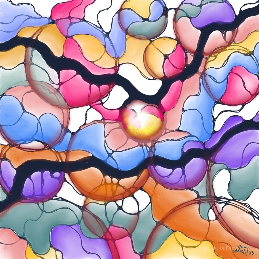 Hi, I'm Julia, a meditative artist who specializes in Neurographic art. Neurographic art is an abstract, transformational art form that is based in psychology and tapping into the creative subconscious. It is said to have many benefits, including reducing stress, improving focus, and promoting creativity. I find a lot of joy, love, and peace in creating my art, and I hope that you can feel it too when you look at it. I believe that art should be chosen based on the emotion it invokes in you. When you buy art, choose something that inspires your soul to dream, love, and be happy each time you walk by it. My art is available in a variety of sizes and styles, so you're sure to find something that you love. If you are looking for art with a specific color palette or topic that you don't find in my gallery, send me a message and let me know the specific vision you have in mind, and I will try to add it to my collection.